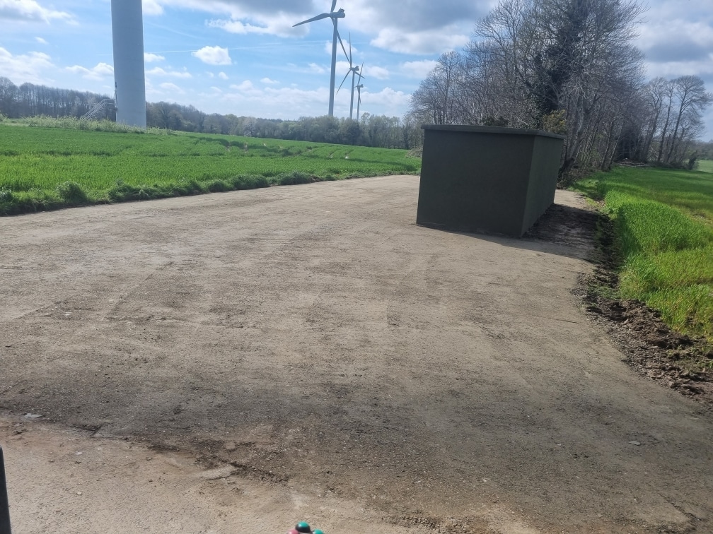 Pour la création d’une plate-forme éolienne, M2TP a assuré le nivellement complet du terrain afin de garantir une base parfaitement stable et sécurisée pour l’installation des futures éoliennes.